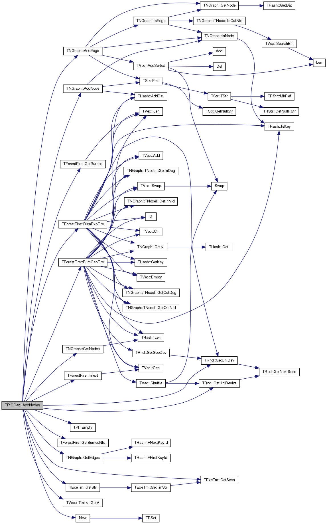 References TNGraph::AddEdge(), TNGraph::AddNode(), BckBurnProb, TForestFire::BurnExpFire(), BurnExpFire, TForestFire::BurnGeoFire(), TPt< TRec >::Empty(), FwdBurnProb, TForestFire::GetBurned(), TForestFire::GetBurnedNId(), TNGraph::GetEdges(), TNGraph::GetNodes(), TExeTm::GetSecs(), TExeTm::GetStr(), TRnd::GetUniDev(), TRnd::GetUniDevInt(), TVec< TInt >::GetV(), Graph, IAssert, TForestFire::Infect(), Kilo, New(), OrphanProb, ProbDecay, srFlood, srOk, srTimeLimit, StartNodes, Take2AmbProb, and TimeLimitSec.