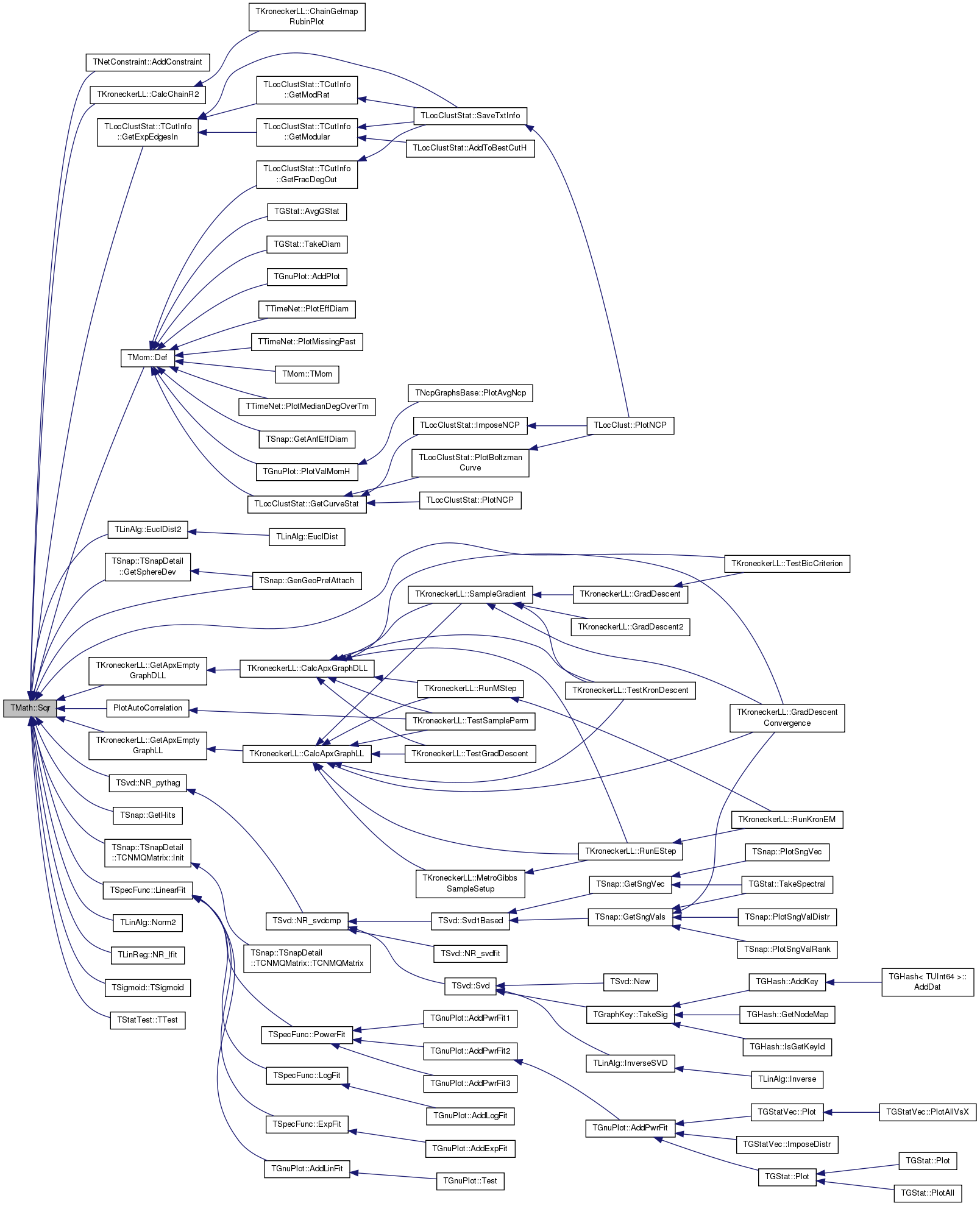 Referenced by TNetConstraint< PGraph >::AddConstraint(), TKroneckerLL::CalcChainR2(), TMom::Def(), TLinAlg::EuclDist2(), TSnap::GenGeoPrefAttach(), TKroneckerLL::GetApxEmptyGraphDLL(), TKroneckerLL::GetApxEmptyGraphLL(), TLocClustStat::TCutInfo::GetExpEdgesIn(), TSnap::GetHits(), TSnap::TSnapDetail::GetSphereDev(), TSnap::TSnapDetail::TCNMQMatrix::Init(), TSpecFunc::LinearFit(), TLinAlg::Norm2(), TLinReg::NR_lfit(), TSvd::NR_pythag(), PlotAutoCorrelation(), TKroneckerLL::TestBicCriterion(), TSigmoid::TSigmoid(), and TStatTest::TTest().