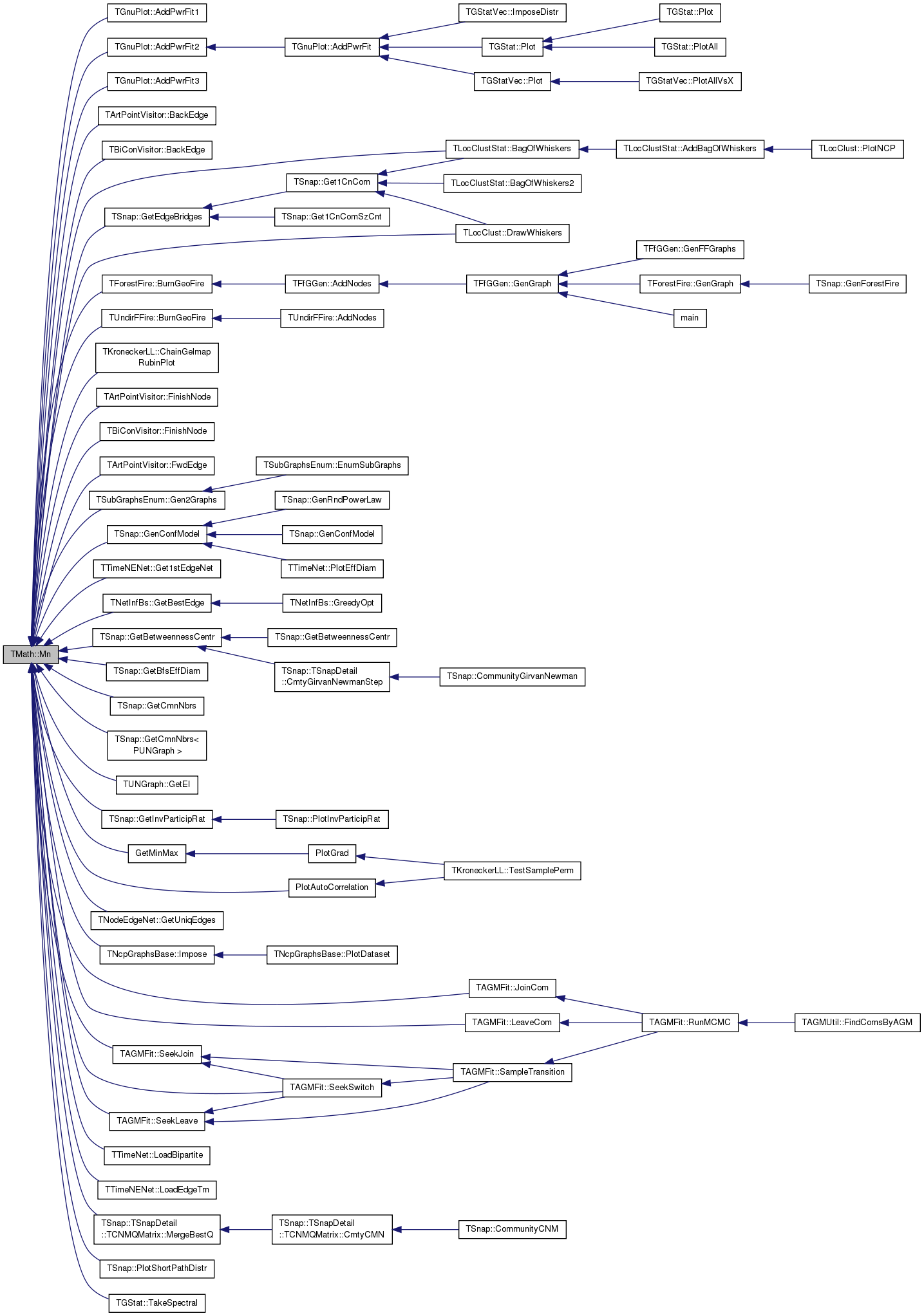 Referenced by TGnuPlot::AddPwrFit1(), TGnuPlot::AddPwrFit2(), TGnuPlot::AddPwrFit3(), TArtPointVisitor::BackEdge(), TBiConVisitor::BackEdge(), TLocClustStat::BagOfWhiskers(), TForestFire::BurnGeoFire(), TUndirFFire::BurnGeoFire(), TKroneckerLL::ChainGelmapRubinPlot(), TLocClust::DrawWhiskers(), TArtPointVisitor::FinishNode(), TBiConVisitor::FinishNode(), TArtPointVisitor::FwdEdge(), TSubGraphsEnum::Gen2Graphs(), TSnap::GenConfModel(), TTimeNENet::Get1stEdgeNet(), TNetInfBs::GetBestEdge(), TSnap::GetBetweennessCentr(), TSnap::GetBfsEffDiam(), TSnap::GetCmnNbrs(), TSnap::GetCmnNbrs< PUNGraph >(), TSnap::GetEdgeBridges(), TUNGraph::GetEI(), TSnap::GetInvParticipRat(), GetMinMax(), TNodeEdgeNet< TNodeData, TEdgeData >::GetUniqEdges(), TNcpGraphsBase::Impose(), TAGMFit::JoinCom(), TAGMFit::LeaveCom(), TTimeNet::LoadBipartite(), TTimeNENet::LoadEdgeTm(), TSnap::TSnapDetail::TCNMQMatrix::MergeBestQ(), PlotAutoCorrelation(), TSnap::PlotShortPathDistr(), TAGMFit::SeekJoin(), TAGMFit::SeekLeave(), TAGMFit::SeekSwitch(), and TGStat::TakeSpectral().