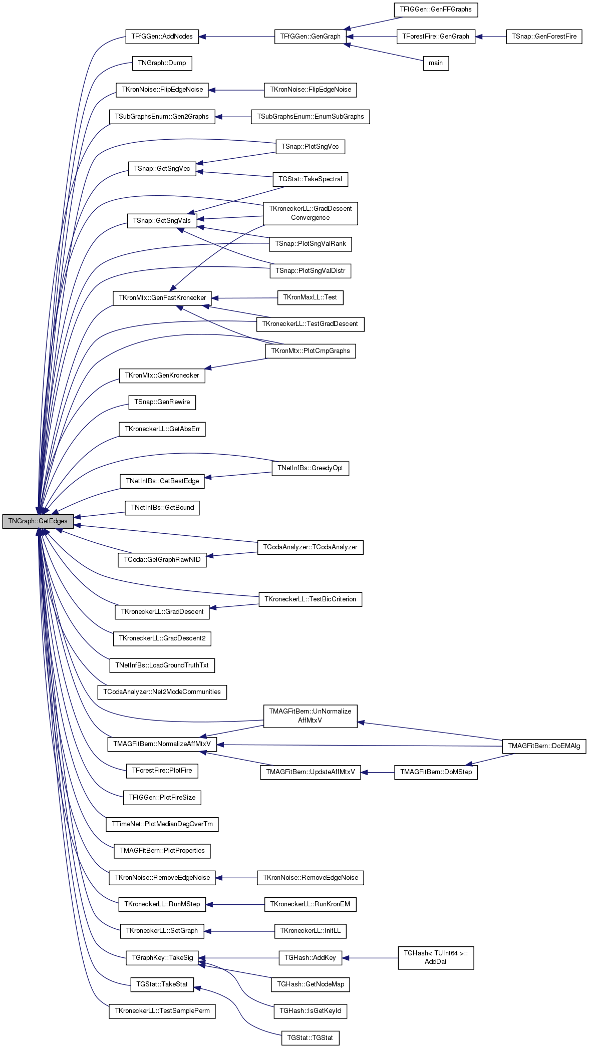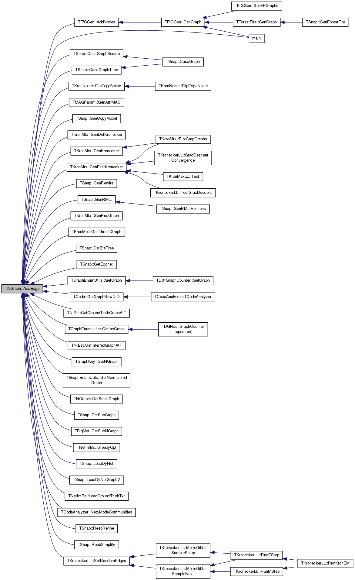 Referenced by AddEdge(), TKroneckerLL::CalcFullApxGraphDLL(), TKroneckerLL::CalcGraphDLL(), TSnap::CascGraphSource(), TSnap::CascGraphTime(), TMAGFitBern::ComputeApxAdjLL(), TMAGFitBern::ComputeApxLL(), TMAGFitBern::ComputeJointAdjLL(), TMAGFitBern::ComputeJointOneLL(), TSnap::TSnapDetail::edgeIntersect(), MotifCluster::EdgeMotifAdjacency(), TKronNoise::FlipEdgeNoise(), TKronMtx::GenFastKronecker(), TSnap::GenRMat(), TNetInfBs::GetBestEdge(), TNetInfBs::GetBound(), TCoda::GetNonEdgePairScores(), TMAGFitBern::GradAffMtx(), TNetInfBs::GreedyOpt(), MotifCluster::IsBidirEdge(), TGraphEnumUtils::IsEdge(), MotifCluster::IsNoEdge(), MotifCluster::IsUnidirEdge(), TCoda::LikelihoodHoldOut(), TKroneckerLL::NodeDLLDelta(), TKroneckerLL::NodeLLDelta(), TKroneckerLL::SetRandomEdges(), TKroneckerLL::SwapNodesLL(), MotifCluster::TriangleMotifAdjacency(), TKroneckerLL::UpdateGraphDLL(), TMAGFitBern::UpdatePhi(), and TMAGFitBern::UpdatePhiMI().