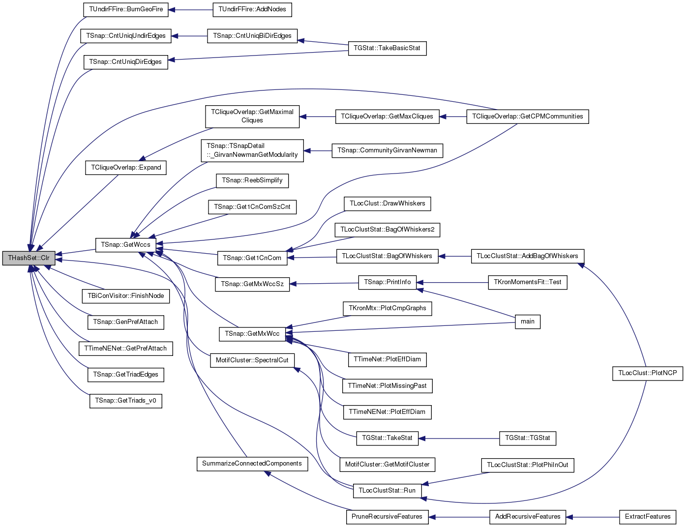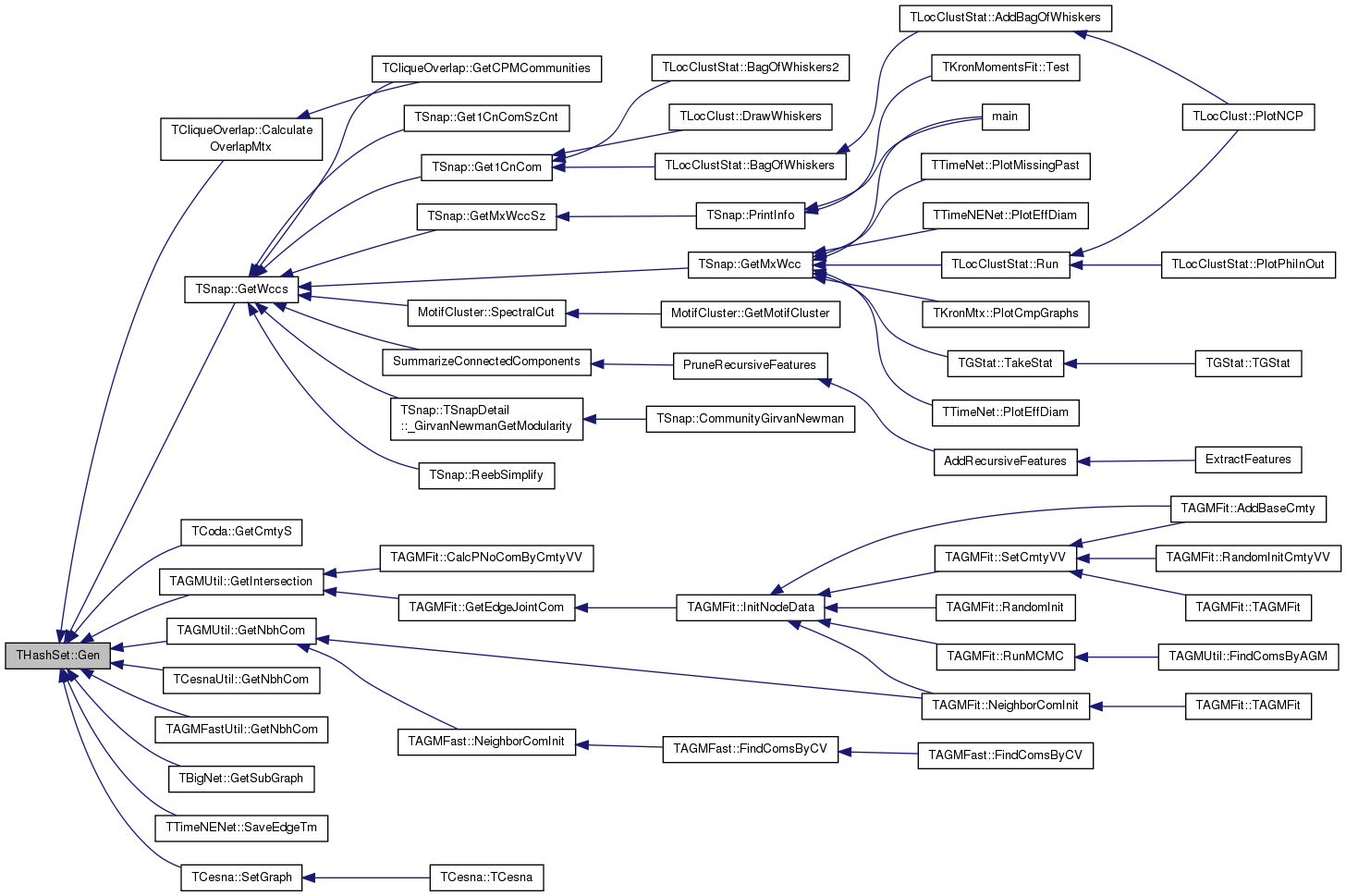 Referenced by TLocClustStat::BagOfWhiskers(), THashSet< TInt >::BegI(), TUndirFFire::BurnGeoFire(), TAGMFit::CalcPNoComByCmtyVV(), TSnap::CascFind(), TSnap::CntUniqDirEdges(), TSnap::CntUniqUndirEdges(), TAGMUtil::ConnectCmtyVV(), TSnap::TSnapDetail::TGetSubGraph< PGraph, false >::Do(), THashSet< TInt >::Empty(), TCliqueOverlap::Expand(), TSnap::GenPrefAttach(), TSnap::GenRewire(), TSnap::GenSmallWorld(), TCesnaUtil::GetConductance(), TAGMUtil::GetConductance(), TAGMFastUtil::GetConductance(), TLocClust::GetCutStat(), TAGMFit::GetEdgeJointCom(), TCliqueOverlap::GetIntersection(), TAGMUtil::GetIntersection(), TUndirFFire::GetNBurned(), TTimeNENet::GetPrefAttach(), THashSet< TInt >::GetRndKeyId(), TSnap::GetTriads_v0(), TNodeEdgeNet< TNodeData, TEdgeData >::GetUniqEdges(), TCoda::GradientForNode(), TAGMFast::GradientForRow(), TCesna::GradientForRow(), TAGMFit::GradLogLForLambda(), TCliqueOverlap::Intersection(), TAGMUtil::Intersection(), TAGMFit::Likelihood(), Loss(), THashSet< TKey, THashFunc >::operator==(), TGnuPlot::PlotValMomH(), TNetInfBs::SavePajek(), TLocClustStat::SaveTxtInfo(), TAGMFit::SeekJoin(), TAGMFit::SeekLeave(), and TAGMFit::SeekSwitch().