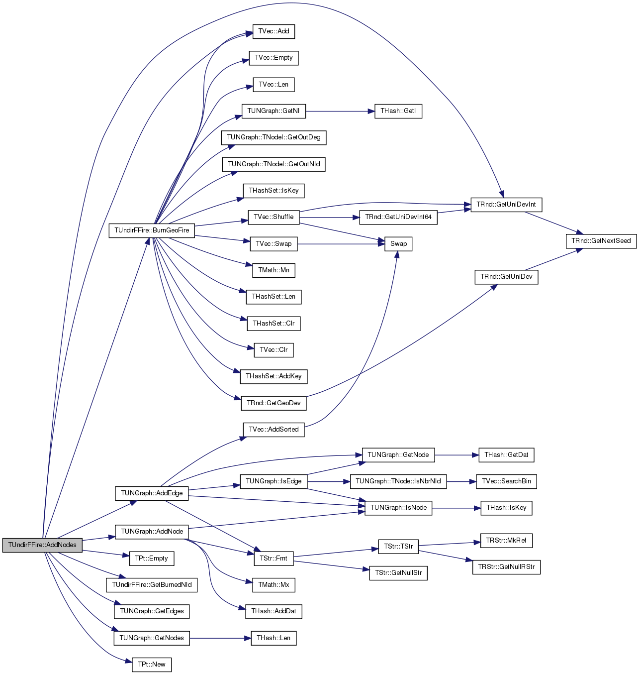 References TVec< TVal, TSizeTy >::Add(), TUNGraph::AddEdge(), TUNGraph::AddNode(), BurnGeoFire(), BurnProb, TPt< TRec >::Empty(), GetBurnedNId(), TUNGraph::GetEdges(), TUNGraph::GetNodes(), TRnd::GetUniDevInt(), Graph, IAssert, Kilo, TPt< TRec >::New(), Rnd, TFfGGen::srFlood, and TFfGGen::srOk.