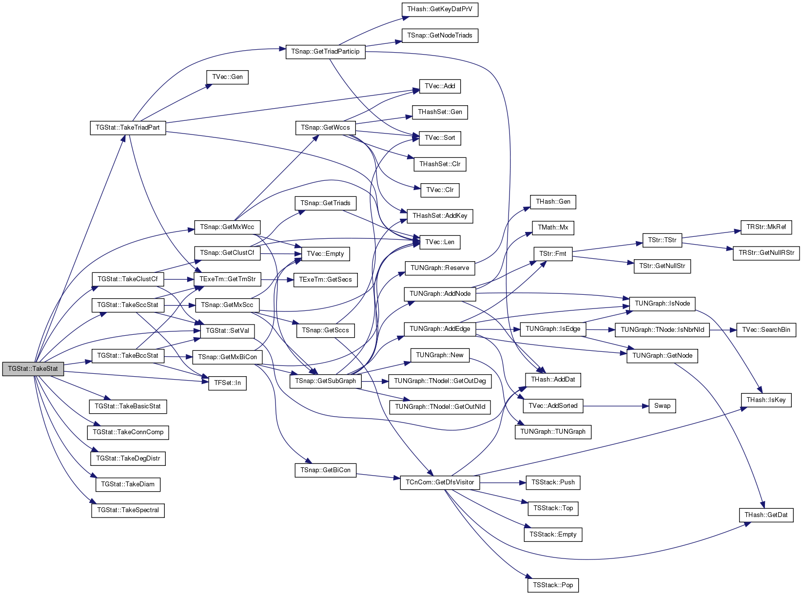 | void | TakeStat (const PNGraph &Graph, const TSecTm &Time, TFSet StatFSet, const TStr &GraphName) |