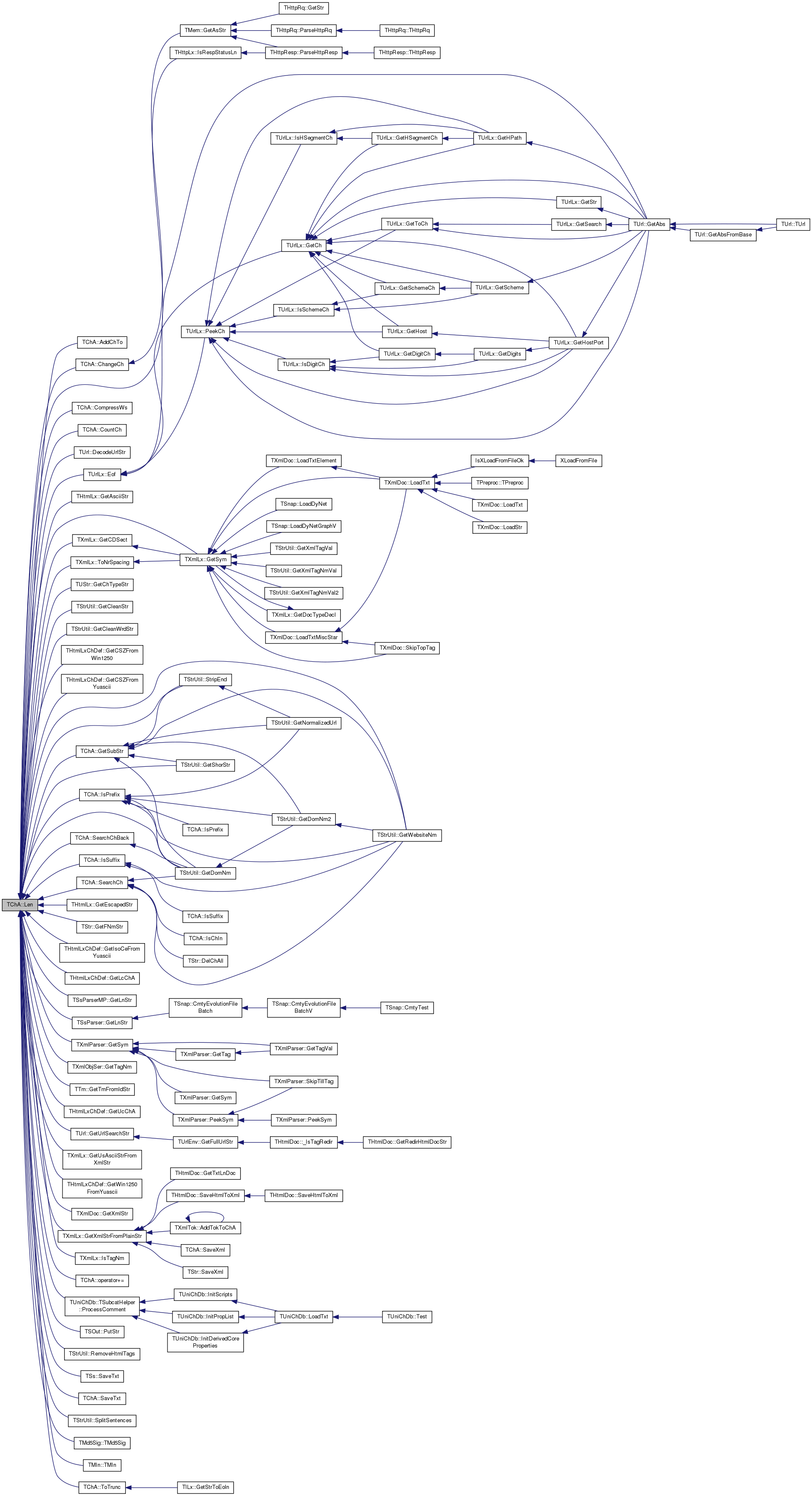 Referenced by AddChTo(), ChangeCh(), CompressWs(), CountCh(), TUrl::DecodeUrlStr(), TUrlLx::Eof(), THtmlLx::GetAsciiStr(), TXmlLx::GetCDSect(), TUStr::GetChTypeStr(), TStrUtil::GetCleanStr(), TStrUtil::GetCleanWrdStr(), THtmlLxChDef::GetCSZFromWin1250(), THtmlLxChDef::GetCSZFromYuascii(), TStrUtil::GetDomNm(), THtmlLx::GetEscapedStr(), TStr::GetFNmStr(), THtmlLxChDef::GetIsoCeFromYuascii(), THtmlLxChDef::GetLcChA(), TSsParserMP::GetLnStr(), TSsParser::GetLnStr(), TStrUtil::GetShorStr(), GetSubStr(), TXmlLx::GetSym(), TXmlParser::GetSym(), TXmlObjSer::GetTagNm(), TTm::GetTmFromIdStr(), THtmlLxChDef::GetUcChA(), TUrl::GetUrlSearchStr(), TXmlLx::GetUsAsciiStrFromXmlStr(), TStrUtil::GetWebsiteNm(), THtmlLxChDef::GetWin1250FromYuascii(), TXmlDoc::GetXmlStr(), TXmlLx::GetXmlStrFromPlainStr(), IsPrefix(), THttpLx::IsRespStatusLn(), IsSuffix(), TXmlLx::IsTagNm(), operator+=(), TUniChDb::TSubcatHelper::ProcessComment(), TSOut::PutStr(), TStrUtil::RemoveHtmlTags(), TSs::SaveTxt(), SaveTxt(), SearchCh(), SearchChBack(), TStrUtil::SplitSentences(), TStrUtil::StripEnd(), TMd5Sig::TMd5Sig(), TMIn::TMIn(), TXmlLx::ToNrSpacing(), and ToTrunc().
